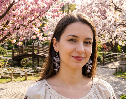 Cercei handmade unicat Flori delicate din plastic reciclat și inox (cod1302)