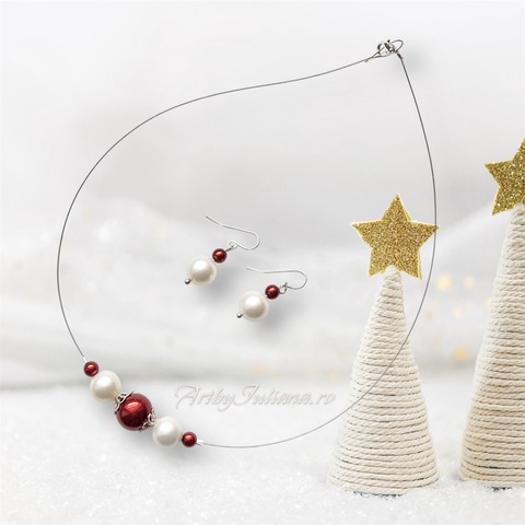 Set argint cu perle "Vine Craciunul"