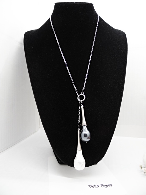 Colier lant otel inoxidabil si pandantiv perle de Mallorca (cod1157)