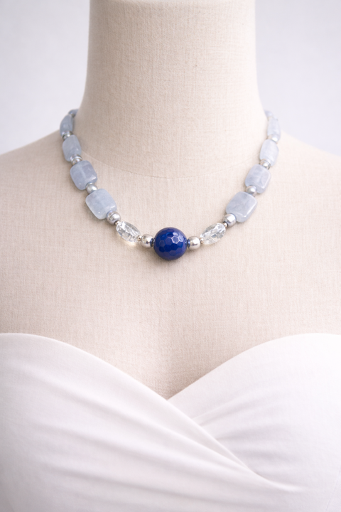 Colier handmade unicat - agat, jad, cristal stanca si perle cultura (cod1135)