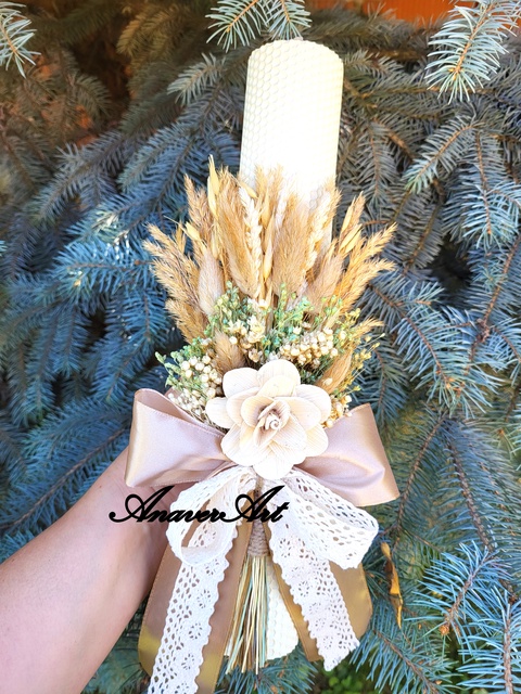 Lumanari fagure pentru nunta cu flori uscate si criogenate