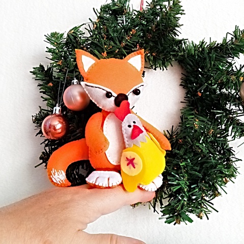 Vulpea hoata ,decoratiune de Craciun ,Cadou jucarie pentru impodobit Pomul de Iarna.