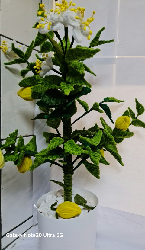 - Material: sarma plusata, ghiveci plastic, piatra marmura