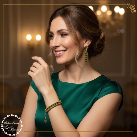 SET cu pătrățele - auriu+verde