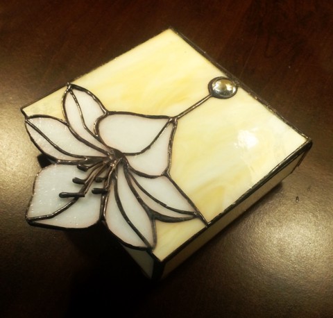 - Material: spectrum bézs, folie de cupru și profil u.lead, margele de sticlă, fehér wissmach, filon de cupru, lipire din aliaj de plumb și staniu