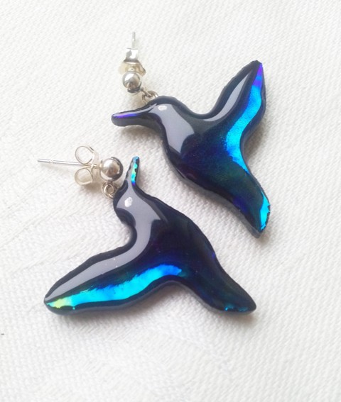 Pereche de cercei cu colibri albastru curcubeu cu părți din argint