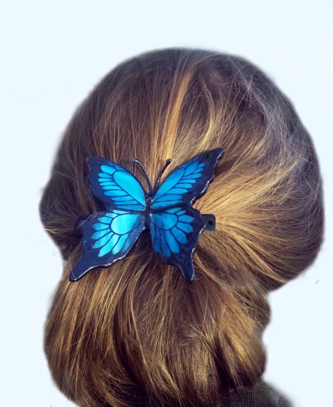 Clemă de păr franțuzească: fulg Azure pictat manual, în Tiffany