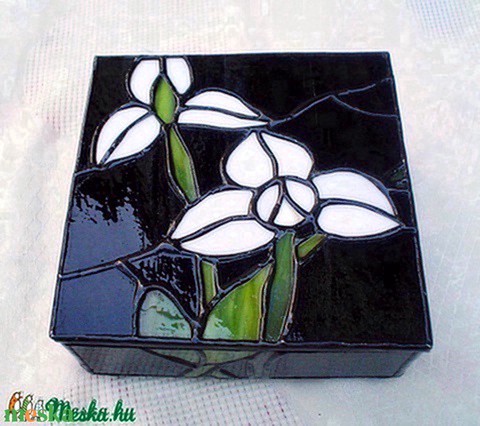 - Material: wissmach sticlă neagră, spectrum alb, wissmach galben-verde, folie de cupru și profil u.lead, filon de cupru, lipire plumb staniu, margele de sticlă, patină, lac