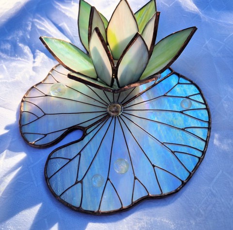 - Material: sticlă, lipire metalică, mărgele de sticlă, fir de cupru