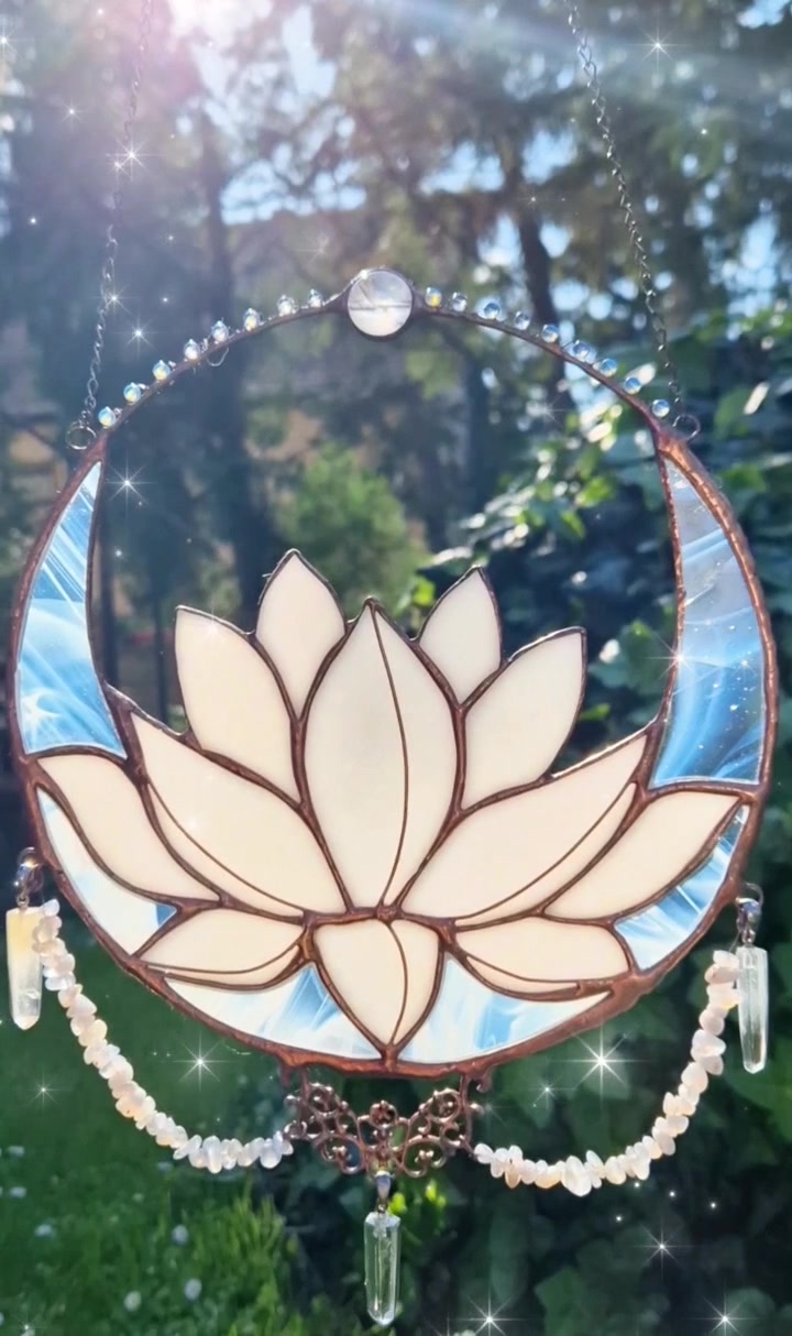 Captator de soare lotus cu voal de lună cu cristal de stâncă și cuarț roz