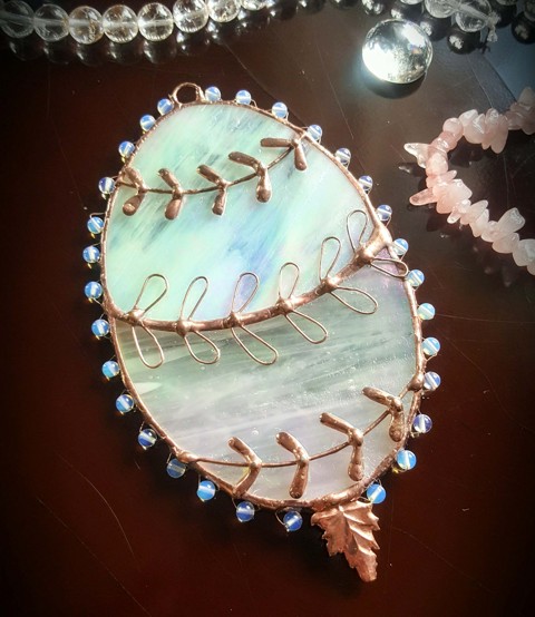 - Material: sticlă, lipire metalică, opalit perlă, sârmă de cupru, organza