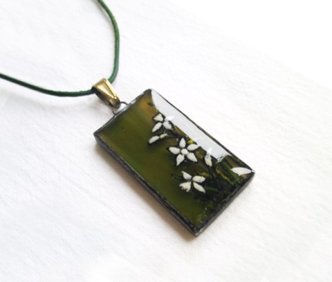 Narcise albe pictate manual, pandantiv din sticlă tiffany