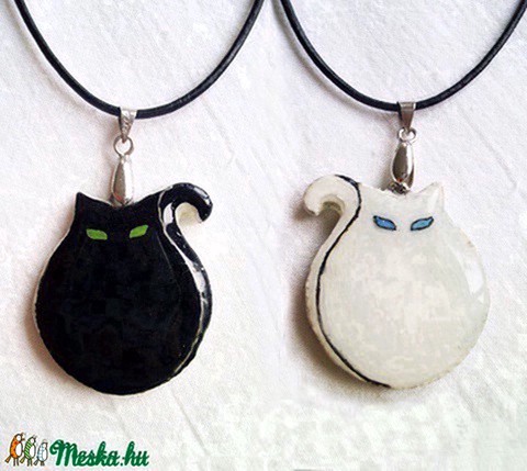 Pandantiv 2 în 1 negru și alb cu două fețe pentru pisici