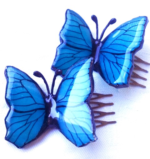 sticlă armstrong, albastră, clemă de păr din metal cu pieptene, folie de cupru, patină, lipire, adeziv super-puternic, lac de sticlă 3d, vopsea de sticlă