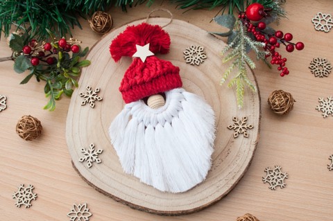 Makramé Moș Crăciun / Elf Ornament de Crăciun - roșu / alb