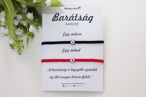 Brățară macramé împletită Brățară prietenie 2 piese - Inimă roșu/negru