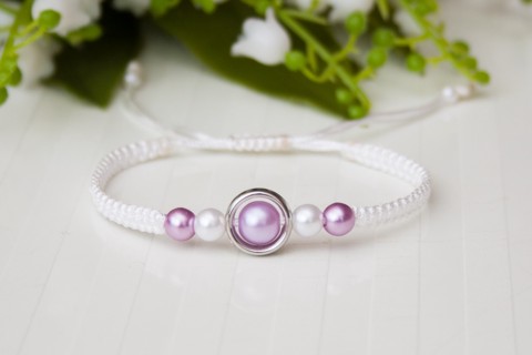 Brățară macramé împletită - Perle alb/violet deschis