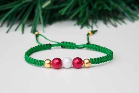 Brățară macramé împletită - Mărgele în culorile Crăciunului