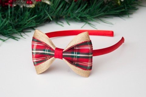 Bentiță Masnis, cravată de păr - carouri aurii/roșii