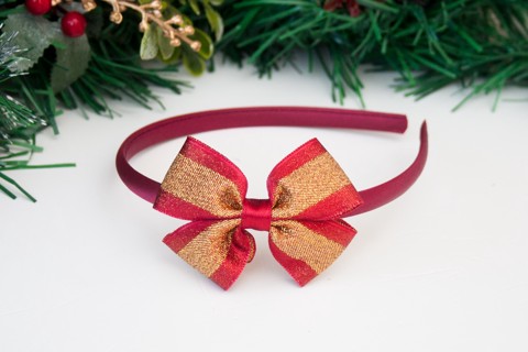 Masnis bentiță de păr cravată de păr pentru Crăciun - Bordeaux / aur