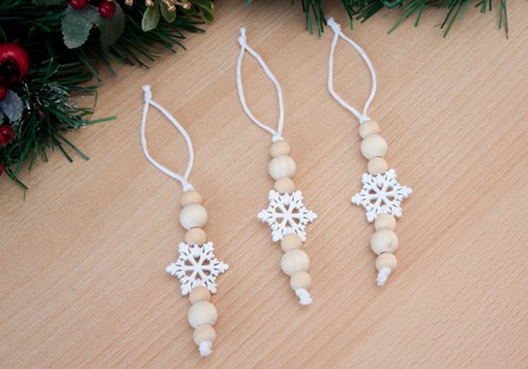 Ornament din lemn pentru pomul de Crăciun 3 bucăți - Fulg de zăpadă cu fulgi de zăpadă