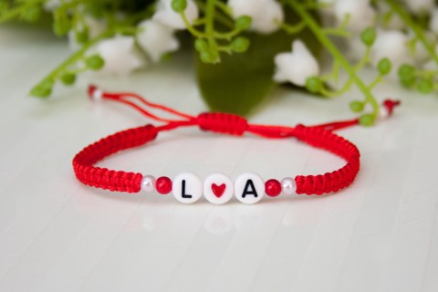 Brățară macramé împletită cu litere - Mărgele cu inimă roșie