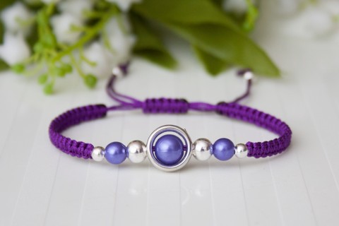 Brățară macramé împletită - Mărgele mov închis/argintiu