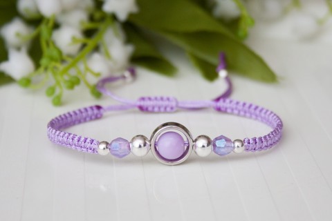 Brățară macramé împletită - Mărgele Violet deschis/argintiu
