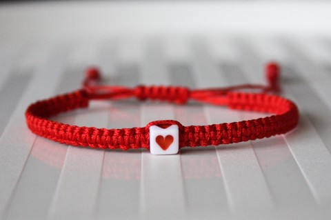 Brățară macramé împletită - Inimă roșie
