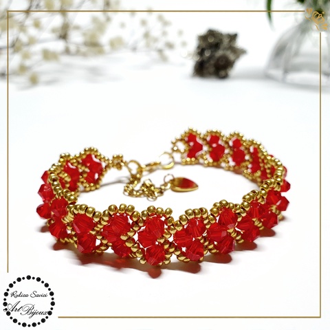 BRĂȚARĂ cu INIMIOARE din cristale - roșu+auriu