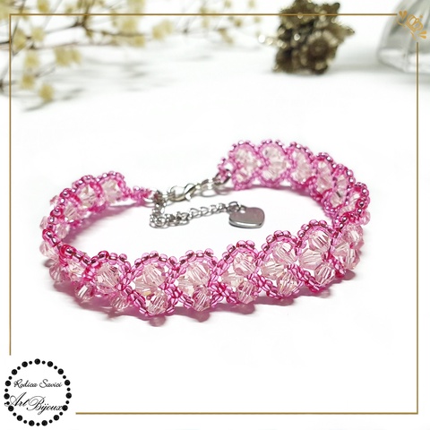 BRĂȚARĂ cu INIMIOARE din cristale - roz