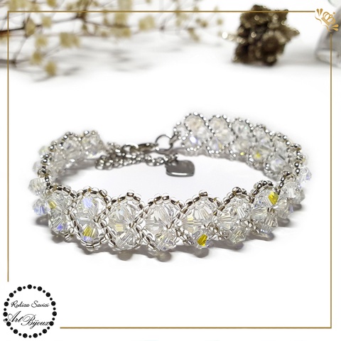 BRĂȚARĂ cu INIMIOARE din cristale - transparente cu irizații