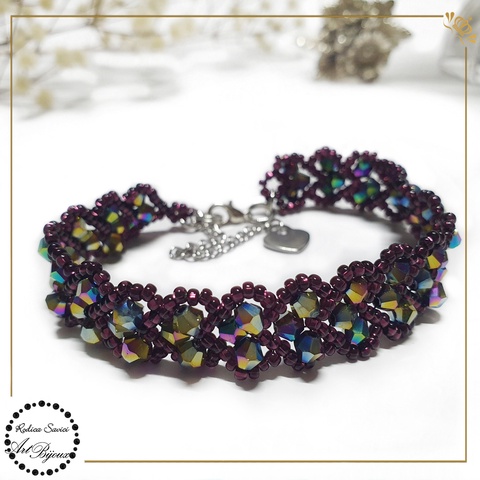 BRĂȚARĂ cu INIMIOARE din cristale - mov cu irizații