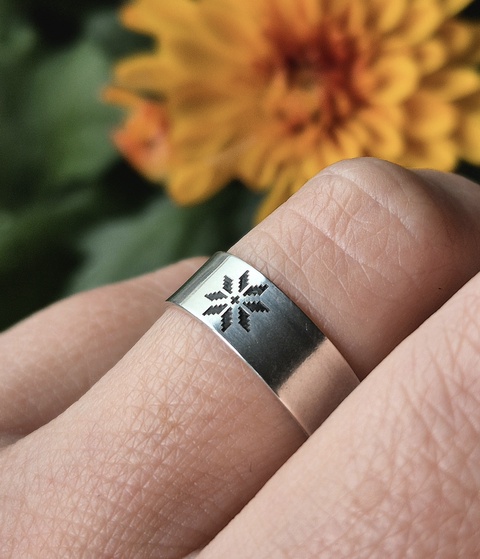 Inel Verighetă din argint 92.5 cu decor tradițional Colul Morii
