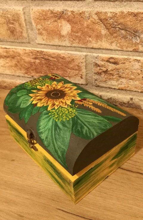 - Material: cutie din lemn, vopsele acrilice, lac mat