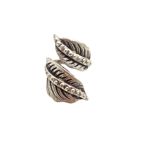 Inel reglabil din zamac frunza dubla, finisaj argintiu antichizat, Inz095