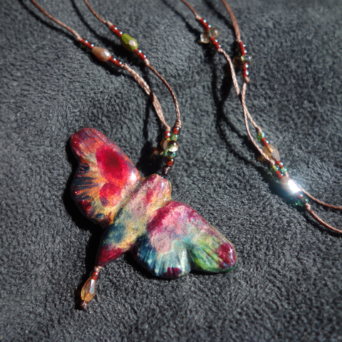 - Material: mărgele sticlă, ață cerată, pastă modelaj cu uscare la aer, rășină uv