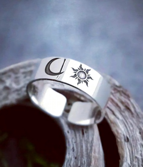Inel Verighetă reglabilă din argint 92.5 cu Soare și Semilună