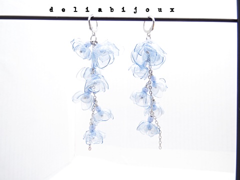 Cercei handmade unicat Flori delicate din plastic reciclat și inox (cod1304)