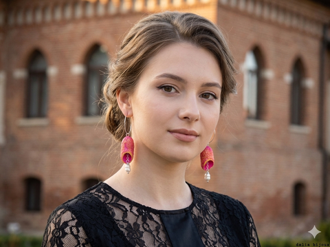Cercei handmade din coconi de mătase cu perlă naturală (cod1308)