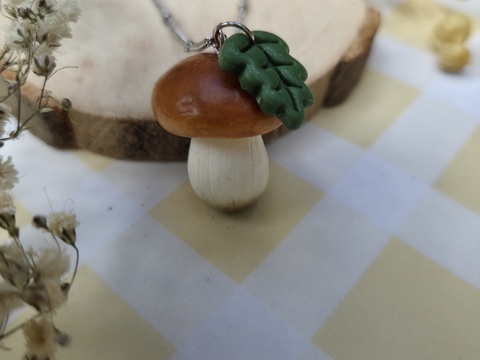 Colier cu hrib și frunză de stejar