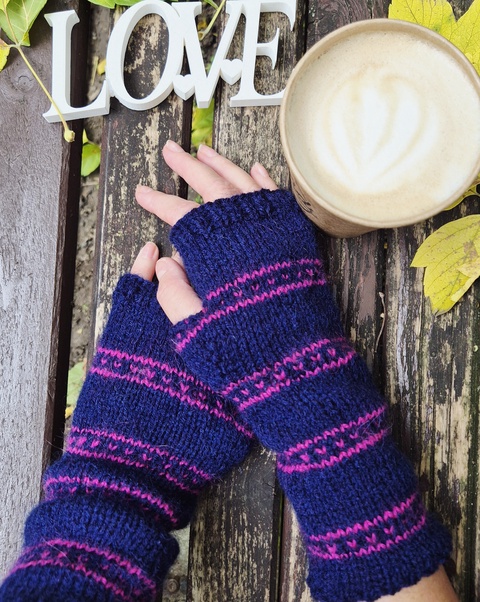 Mănuși fără degete tricotate manual - Energie de Toamnă