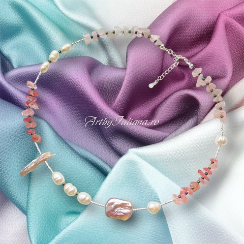 Colier handmade cu argint și pietre semipretioase "Delicatețe"