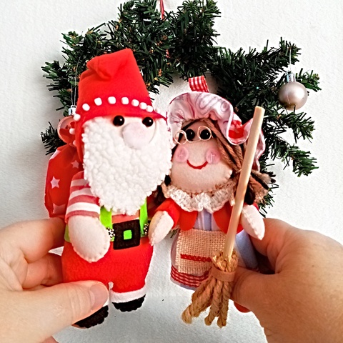 Set de 2 Păpuși Decorative , Ornament pentru Pomul de Crăciun , Aranjament de Sărbători.