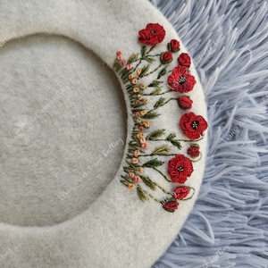 Beretă din lână cu broderie manuală florală