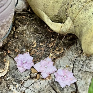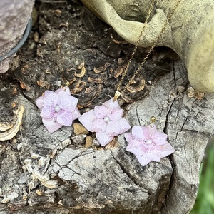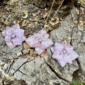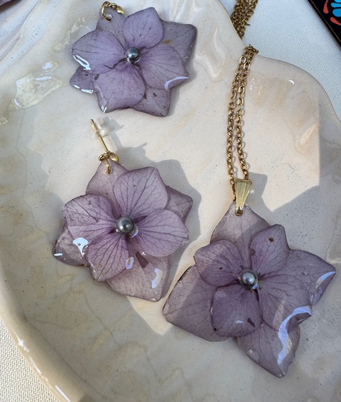 Set Colier si cercei din rasina si flori naturale de hortensie