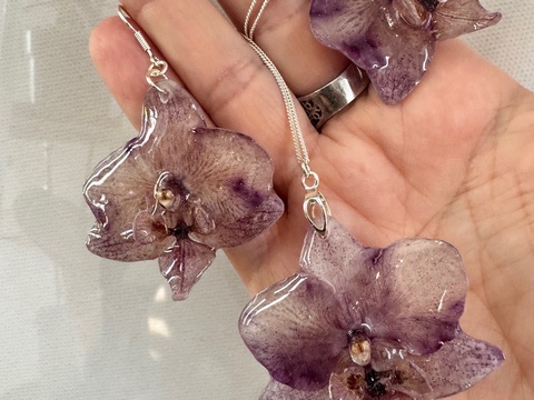 Set bijuterii din argint 925 cu orhidee naturale în rășină Elegant