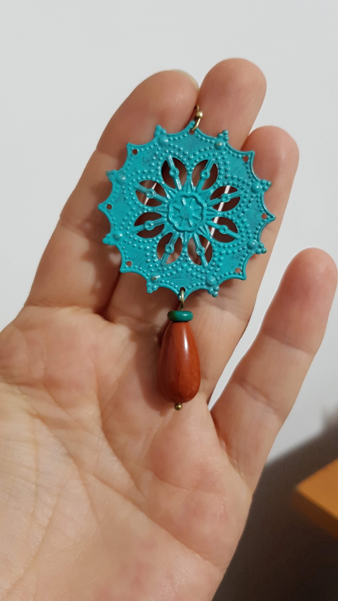 componente metalice, componente patinate de culoare bronzului, vopsea metal verdigris, piatra semipretioasa jasp rosu, piatra crisocola