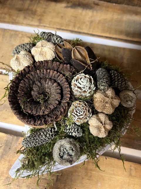 - Material: beton, fructe uscate, moha