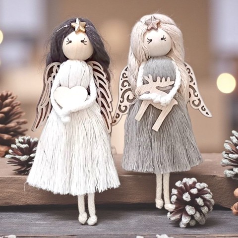 - Material: fire macramé, minge de lemn, inimă de lemn, simțit